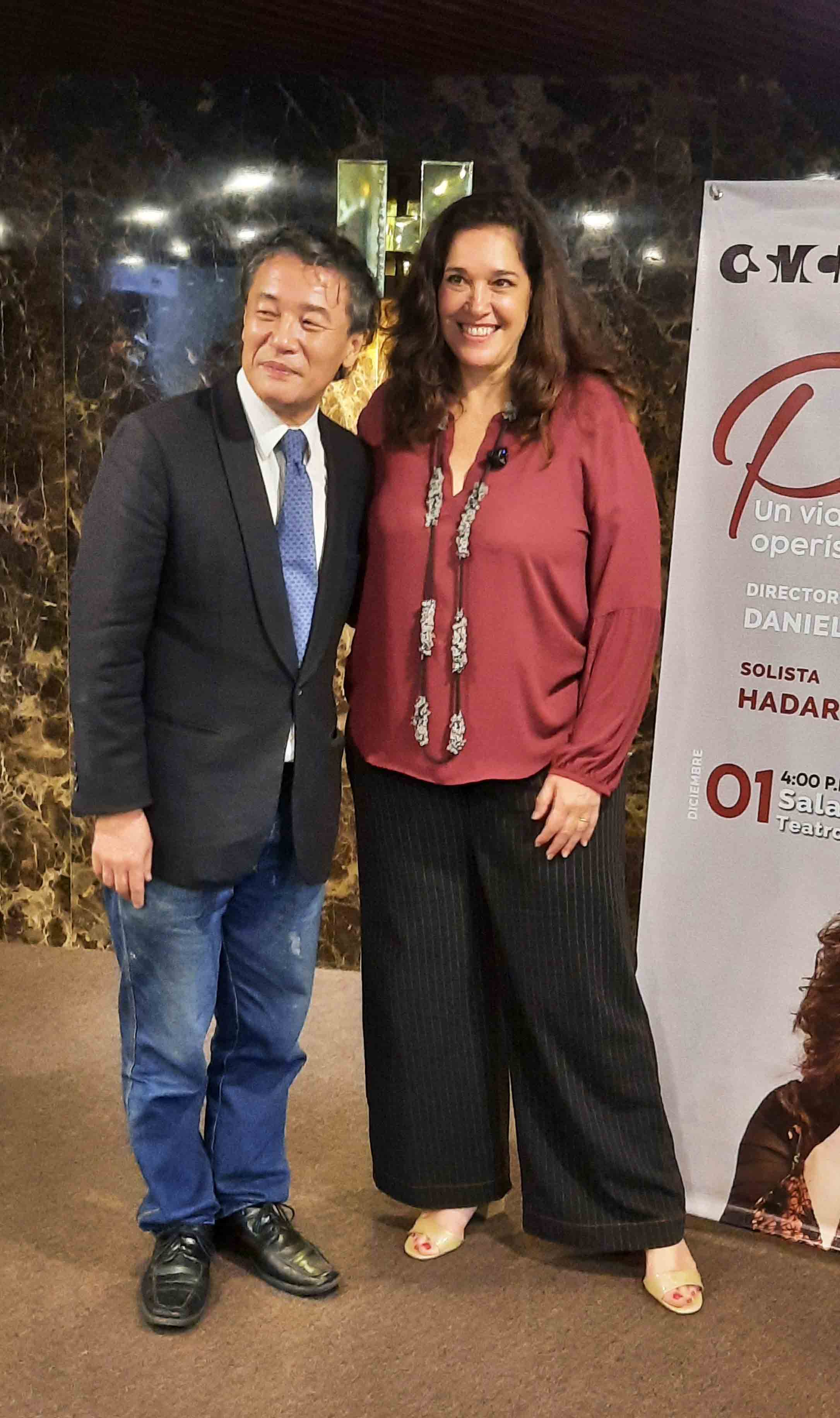 La artista estuvo acompañada por el maestro Sadao Muraki, extraordinario pianista, que confieso admiro muchísimos desde los lejanos años cuando se presentaba en los conciertos dominicales de las 11:15 am en la sala Ríos Reyna del Complejo Cultural Teresa Carreño, hoy convertido en director de la Orquesta Sinfónica Municipal de Caracas y el joven pero no menos admirado maestro Daniel Gil, director asociado de la OSMC y del Ballet del Teresa Carreño, quién recientemente se lució y aplaudimos en el centenario Teatro Municipal de Caracas, durante la II Gala Ópera Caracas.